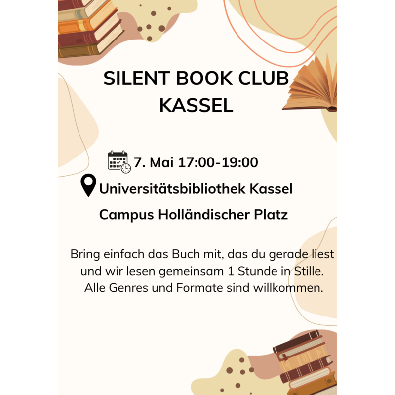 Ablauf des Silent Book Club am 7. Mai in der Campusbibliothek Kassel:
